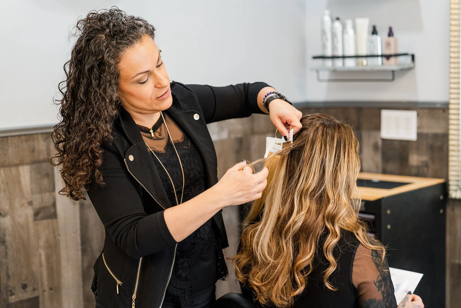 From the beginning of my career, I was drawn to hair extensions and their ability to transform not just hair, but confidence. Over the years, as the industry evolved, so did I. I earned 16 certifications and became proficient in multiple methods, including hidden beaded rows, traditional beaded rows, keratin bonds, tape-in extensions, and more. I don’t believe in a one-size-fits-all approach. Every method I use is chosen intentionally to fit a client’s lifestyle, goals, and comfort. Whether I’m helping someone grow out a haircut they regret, restoring fullness for a postpartum mom, or creating seamless, natural volume for fine hair, the work is always personal and considered.